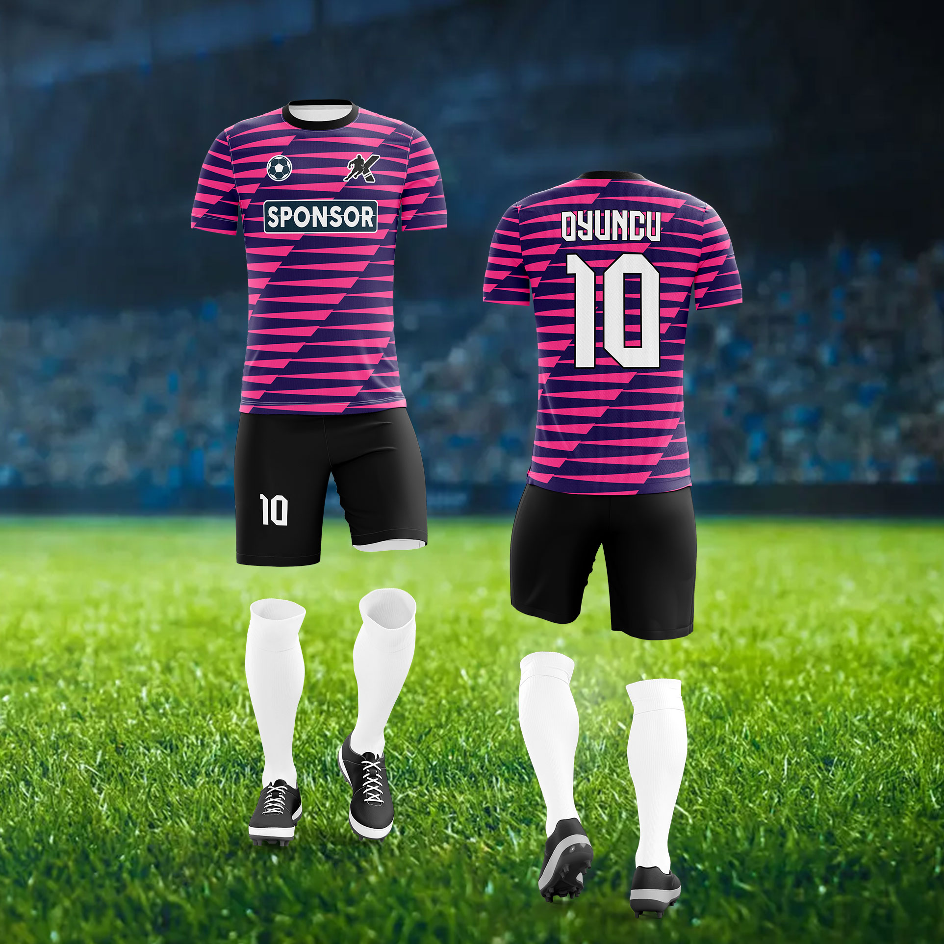 • İstediğiniz Forma/Eşofman/Çanta vb. ürünlerin tasarımı renk, model, isim, numara, logo isteğiniz üzerine yapılır.